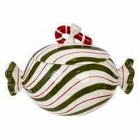 Конфетница из керамики в форме конфеты — яркое и праздничное украшение для любого стола. Ее оригинальный дизайн сочетает красный и зеленый цвета на белом фоне, что создаёт традиционную новогоднюю атмосферу и дарит ощущение тепла и радости. Изделие выполнено из качественной керамики с гладкой, блестящей поверхностью, которая подчёркивает его праздничный стиль.