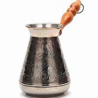 Турка изготовлена из высококачественной меди марки М1М, внешняя поверхность покрыта декоративным черным никелем, внутренняя поверхность – слоем пищевого олова, являющимся безопасным для здоровья. Турка предназначена для приготовления натурального кофе. Медь обладает равномерной теплопроводностью, что позволяет приготовить кофе, отличающийся изысканным ароматом. Узкое горлышко также является положительной характеристикой изделия. Длинная ручка, выполненная из дерева, обеспечивает защиту от ожогов. Подходит для использования на всех типах плит, кроме индукционных. Не подходит для использования в посудомоечной машине. Не допускается нагрев изделия без воды, а также чистка с применением металлических щеток и абразивных моющих средств.