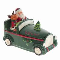 Конфетница в виде фигурки автомобиля с новогодними персонажами станет ярким украшением праздничной сервировки и отличным подарком на Новый год или Рождество. Она выполнена из прочной керамики и покрыта глазурью, которая придает ей нарядное глянцевое сверкание.