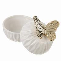 Крышка с золотой изящной бабочкой создает контраст между гладкой белизной фарфора и блеском золотого цвета , вносит яркий акцент и делает предмет уникальным. Бабочка не только декоративный элемент, но и символ свободы и легкости, что добавляет шкатулке особый смысл и поэтическую составляющую.