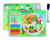 Пособие позволяет неоднократно проверить свои знания времени суток. Маркер на водной основе позволяет стирать написанное.