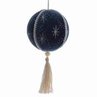 Декоративное подвесное украшение “Звездный Шар” из пенопласта покрыто бархатным материалом в синем цвете, украшено небесными звездами и серебряной тесьмой. Низ шара украшает белая кисточка. Это элегантное новогоднее украшение внесет праздничное настроение в ваш дом.
