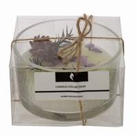 Ароматическая свеча в низком прозрачном стакане из фактурного стекла, диаметр 8,5 см. Основа — качественный парафин нежно-кремового оттенка. Верх украшен сухоцветами: бордовым бутоном, сиреневыми лепестками и зелеными веточками, создающими изысканную мини-композицию. При горении теплый свет красиво преломляется в стекле, наполняя комнату уютом и легким природным ароматом. Рекомендации: подрезайте фитиль до 5–7 мм, ставьте на жаропрочную поверхность и не оставляйте без присмотра. Отличная идея для подарка и стильного декора.