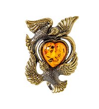 Брошь ''Голуби с сердцем'' (латунь, янтарь). AM-2029.