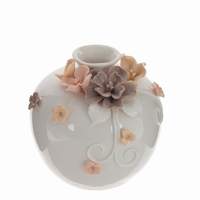 Нежная белая фарфоровая вазочка с цветочным объемным декором станет изысканным украшением интерьера в качестве самостоятельного элемента или в составе композиции. Также прекрачно подойдет в качестве подарка девушке, женщине, маме, бабушке, подруге или сестренке. Диаметр горлышка: 2,5 см.